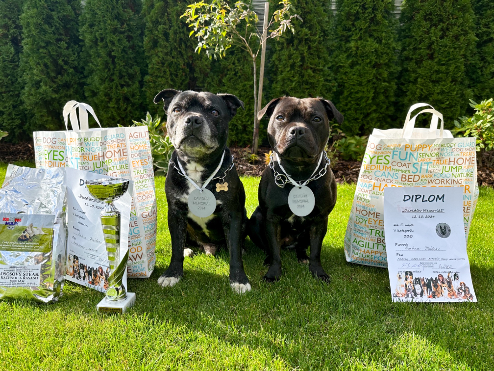 Dnes jsem vytáhla staffíčky na závod v ZKO Hostivař Davidův memoriál. Agi měla svoji závodní premiéru v kategorii ZZO. Cvičila celkem hezky, ovšem madam se rozhodla, že si v té zimě do mokré trávy rozhodně lehat nebude a tím se bohužel u dvou cviků krásně vybodovala a získala tak s 47 body (60) předposlední 10. místo 🙈